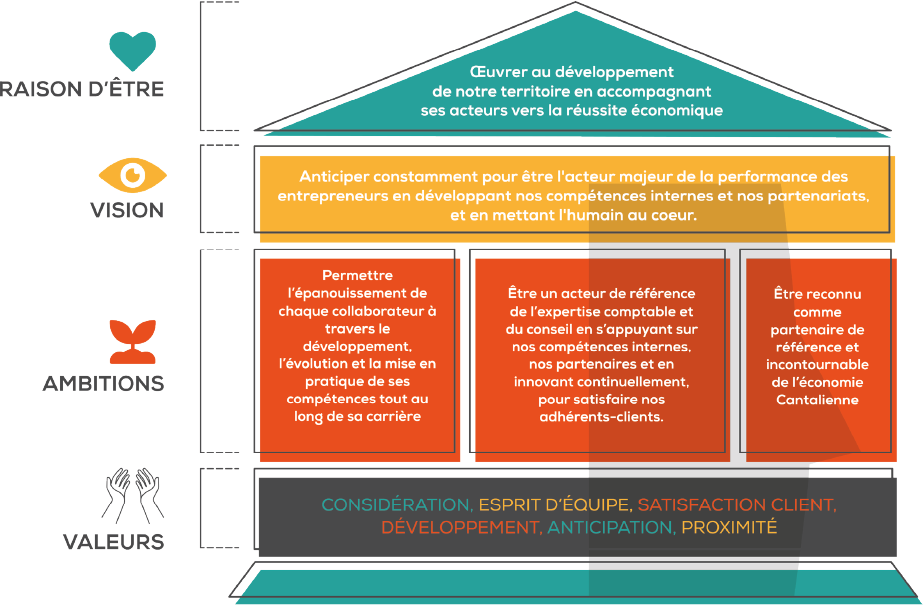 Être un acteur de référence des métiers de l’expertise comptable et du conseil en s’appuyant sur nos compétences et en innovant continuellement afin de satisfaire et former nos adhérents-clients.